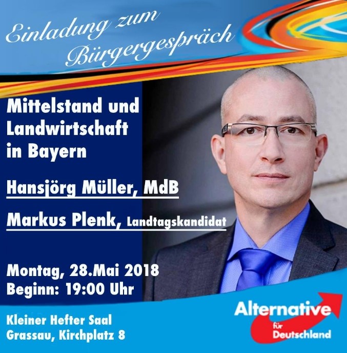 wir freuen uns, Sie zum zweiten Bürgergespräch unseres Wahlkreisabgeordneten Hansjörg Müller einladen zu dürfen. Dieses findet am Montag, den 28. Mai um 19 Uhr in Grassau statt im Gasthof zur Post, kleiner Heftersaal im 1. Stock.